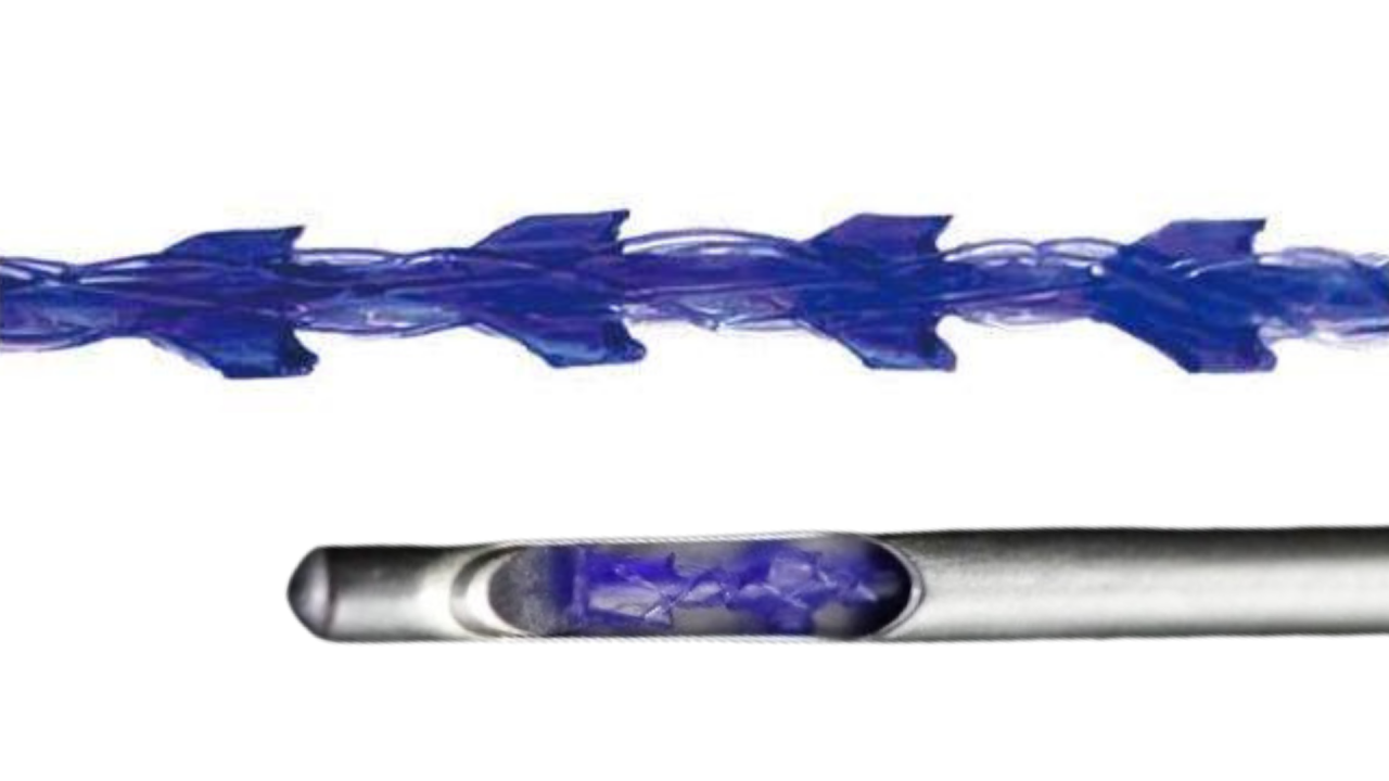 ◆ コグ付の糸にメッシュ構造の糸が巻き付いており、メッシュの隙間に組織が入り込むことで高い固定力を発揮。引き上げ効果が向上します。これにより、長期間にわたってリフトアップ効果を維持します。